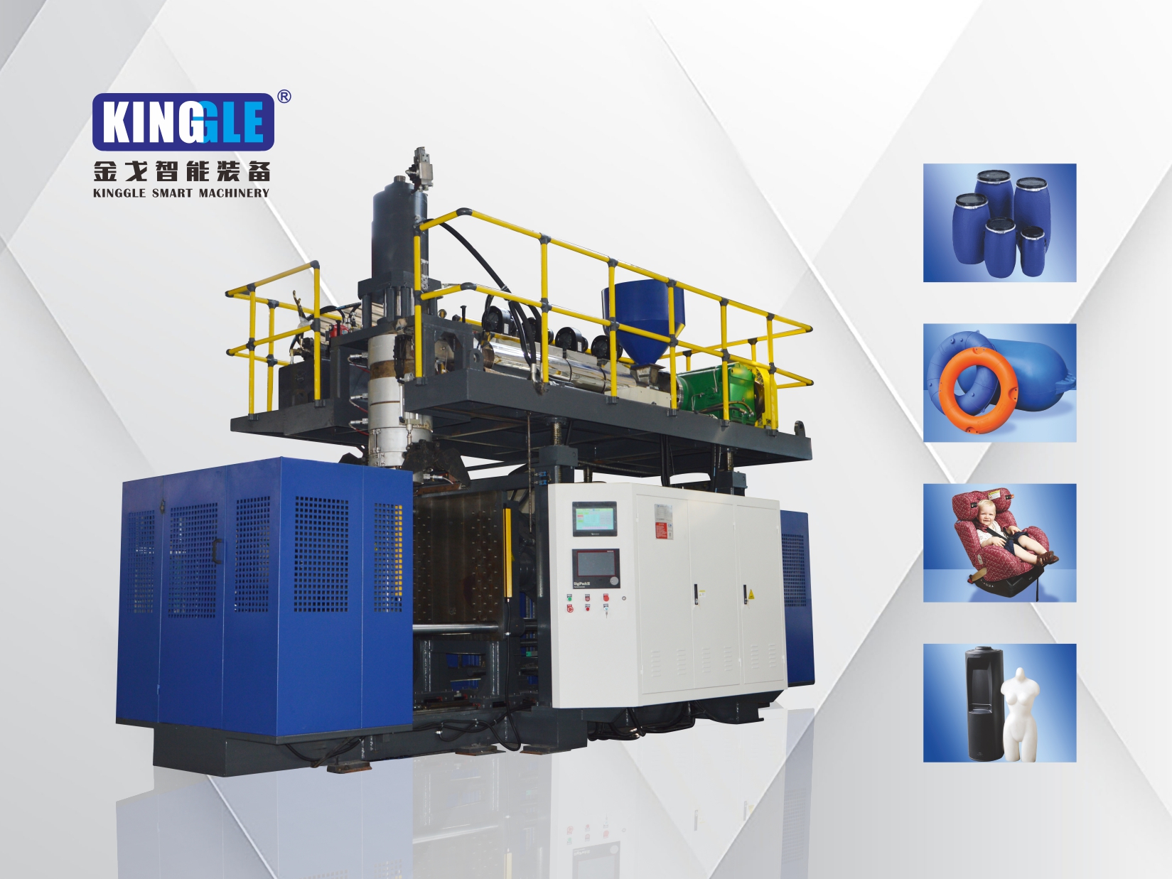 適合制品:農(nóng)藥瓶、桶、罐,戶外家具吹塑機(jī),沙發(fā)吹塑機(jī),太陽傘底座吹塑機(jī),廣告牌底座吹塑機(jī)等產(chǎn)品
